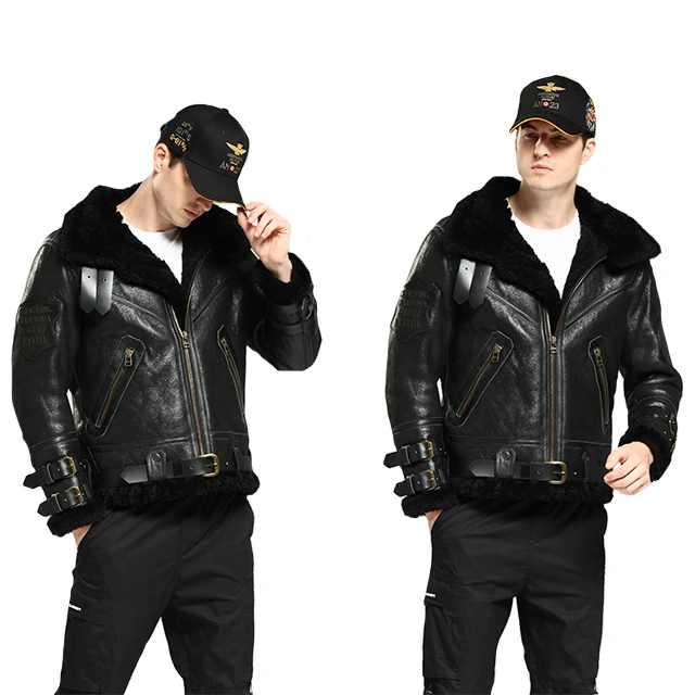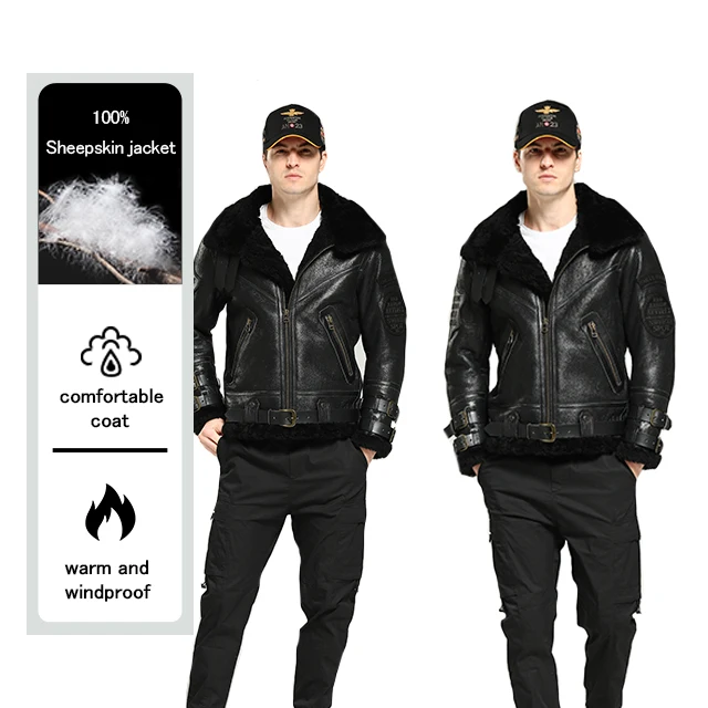 Wool Jacket Sheepskin Coat Leather Jacket Men's Fur Coat Badge A2 Bomber Jacket
