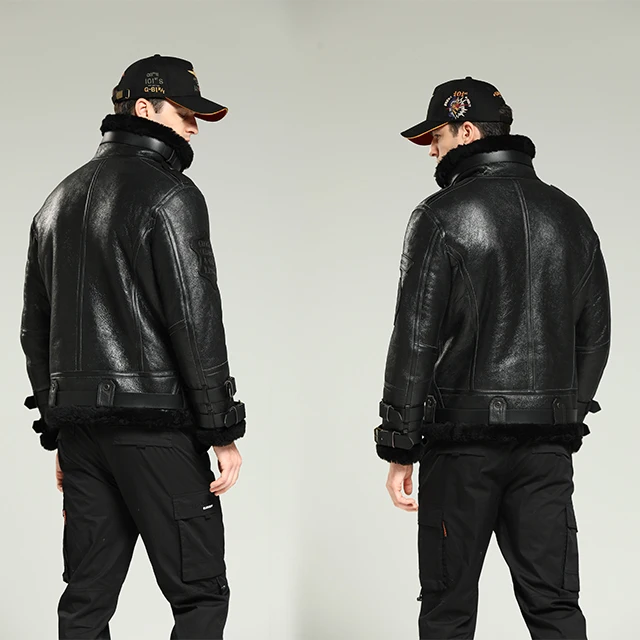 Custom High Quality Casual Sheep Bomber B3 Leather Jacket Men With Fur Collar