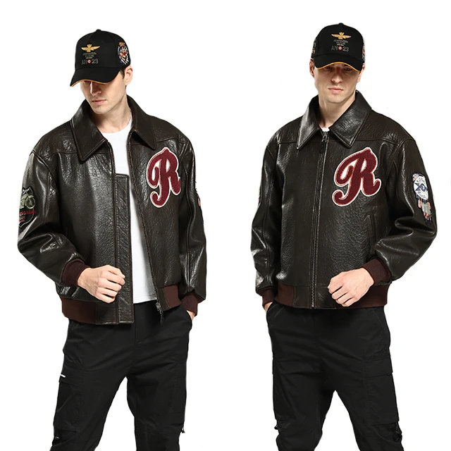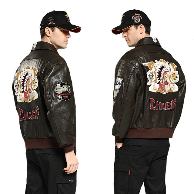 Customized Men's pilot Jacket Cowhide Jacket Custom Embroidery