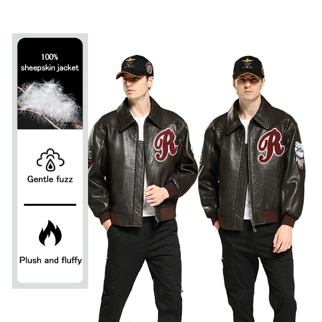 Wool Jacket Sheepskin Coat Leather Jacket Men's Fur Coat Badge A2 Bomber Jacket