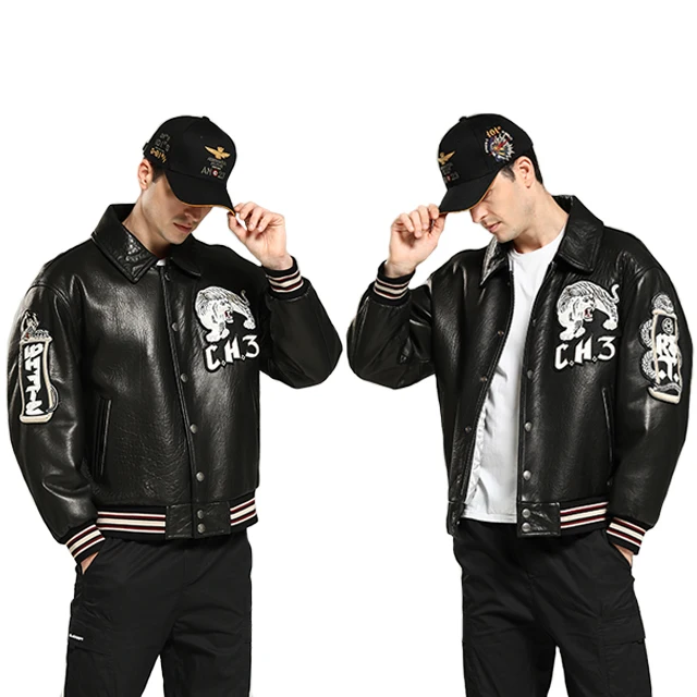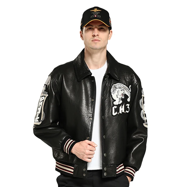 Customized Men's pilot Jacket Customized Embroidery Design Leather Jacket
