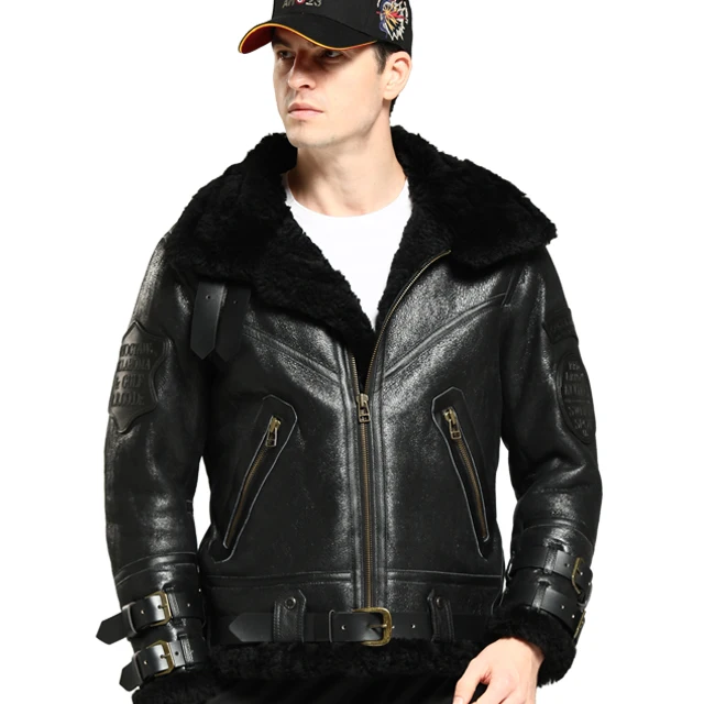 Shearling Jacket Sheepskin Coat Leather Jacket Fur Coat Badge Pilot Leather Jacket