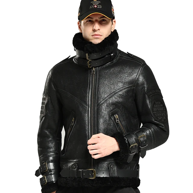 Wool Jacket Sheepskin Coat Leather Jacket Men's Fur Coat Badge A2 Bomber Jacket