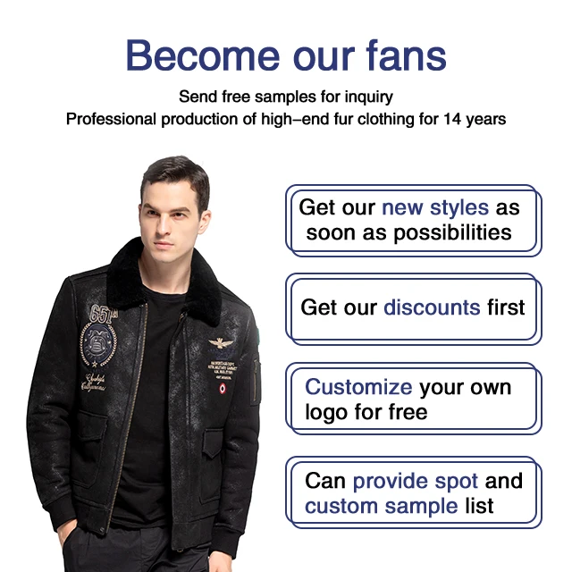Shearling Jacket Sheepskin Coat Leather Jacket Fur Coat Badge Pilot Leather Jacket