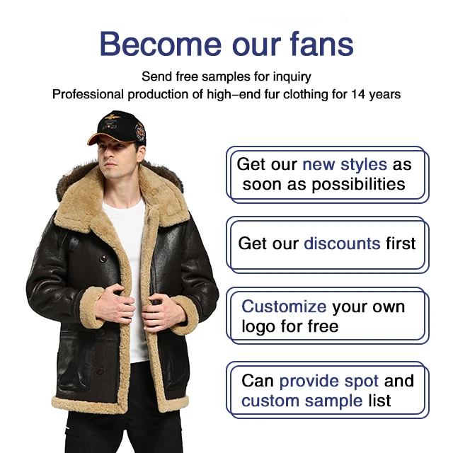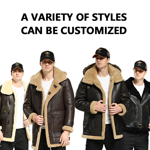 2023 Custom High Quality Casual Sheep Bomber B3 Leather Jacket Men With Fur Collar