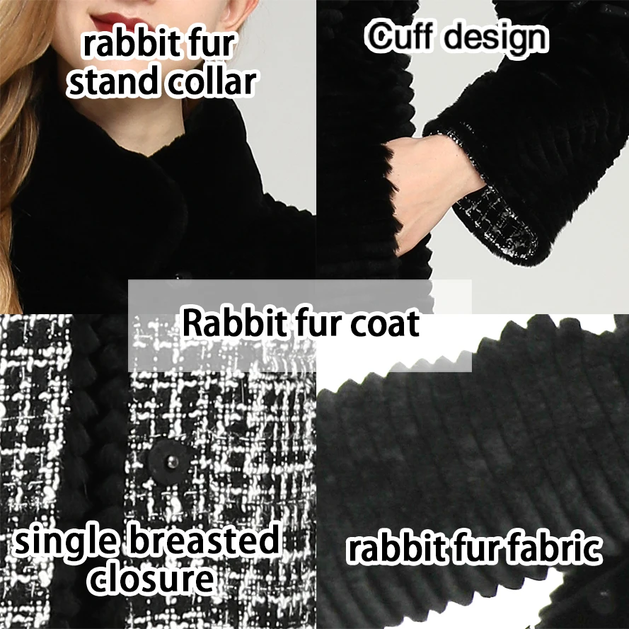 2023 European Winter Real Rabbit Black Double Face Fur Coat Women Long