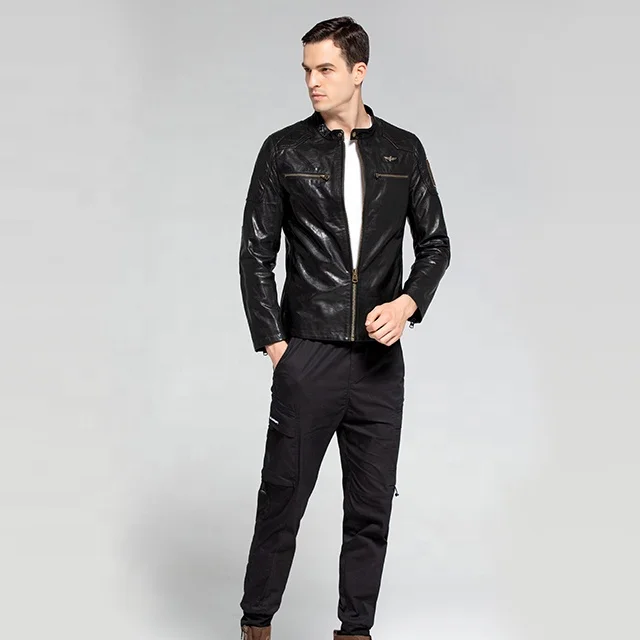 Vegetable Tanned Wash Black Custom Motorcycle Fashion Genuine Biker Leather Biker Jacket Made in China