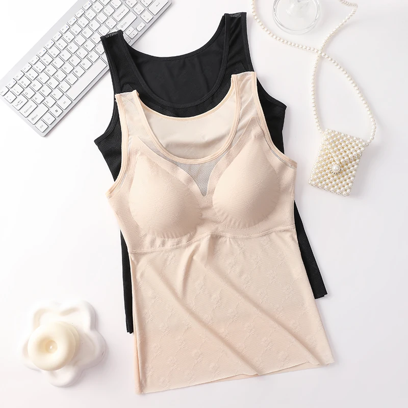 Sexy Comfortable Seamless Wire Free One-Piece Women's Bra Wide-strap Camisole Breathable U-neck Anti-Slip Bras