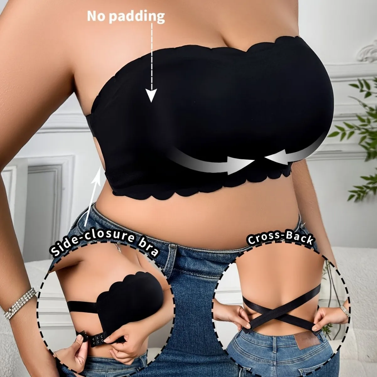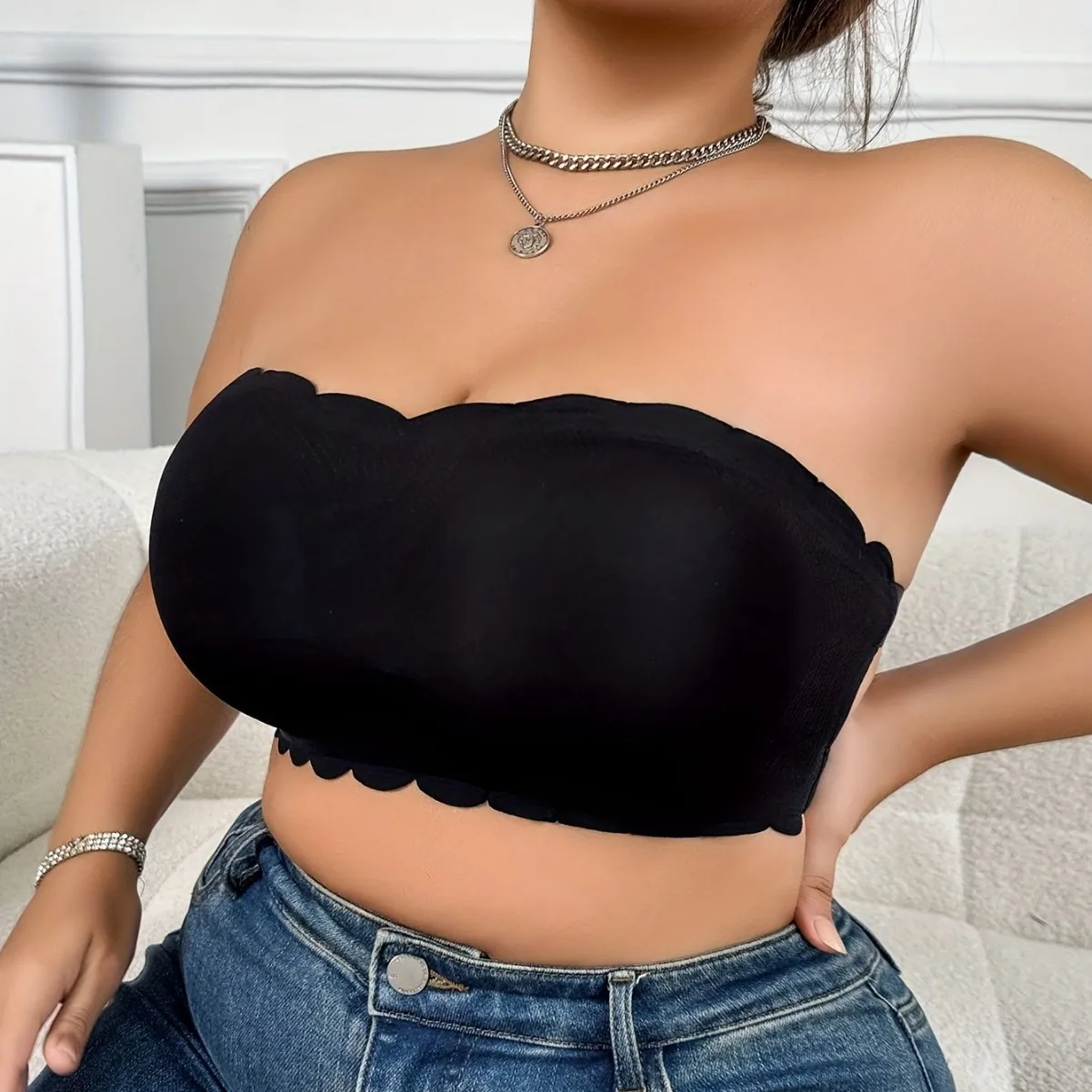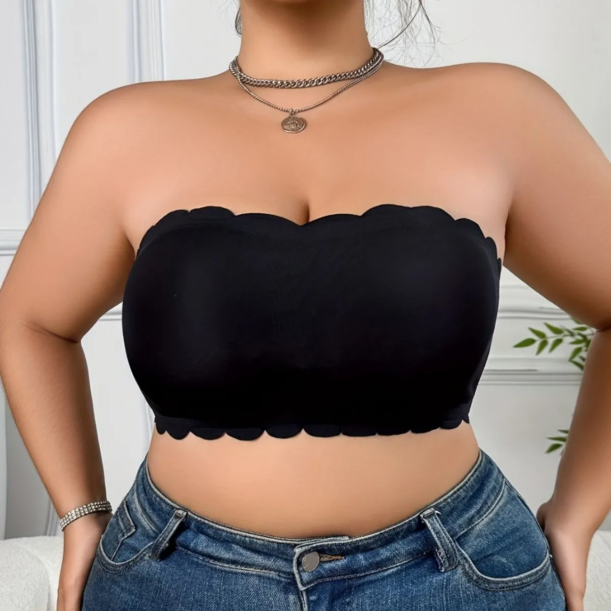 Plus Size Strapless Bandeau Bra Seamless Anti-Slip Tube Top Wire-Free Backless Underwear Side Clasp Push-Up Bra
