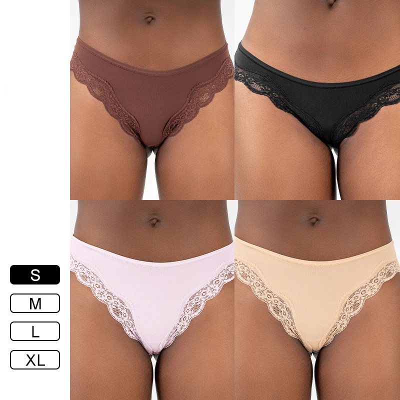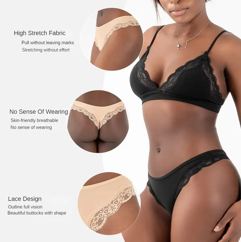 New Arrival Women Sexy Underwear Lace High Quality Fit Breathable Solid Thong Brief Thin Smooth Mid-waist Panties for Women