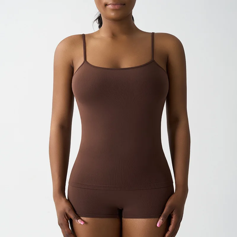 Seamless Camisole Tank Top for Women Double-Layer Slim Fit Ribbed Crop Vest High Elastic Nylon Body Shaping Undershirt