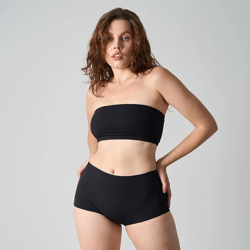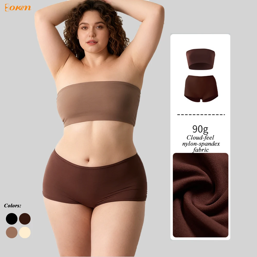 Women Seamless Tube Underwear Set Double-Layer Strapless Bandeau Bra & Panties Ultra-Soft Breathable No-Trace Lounge Set