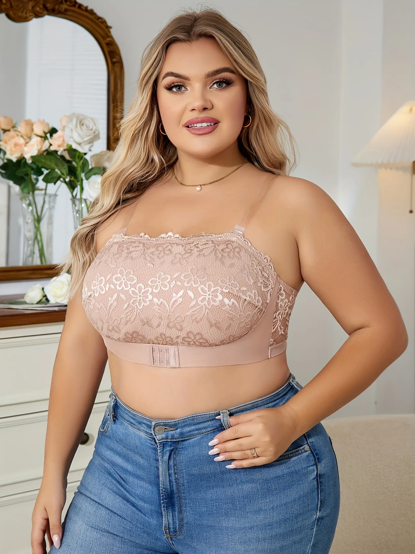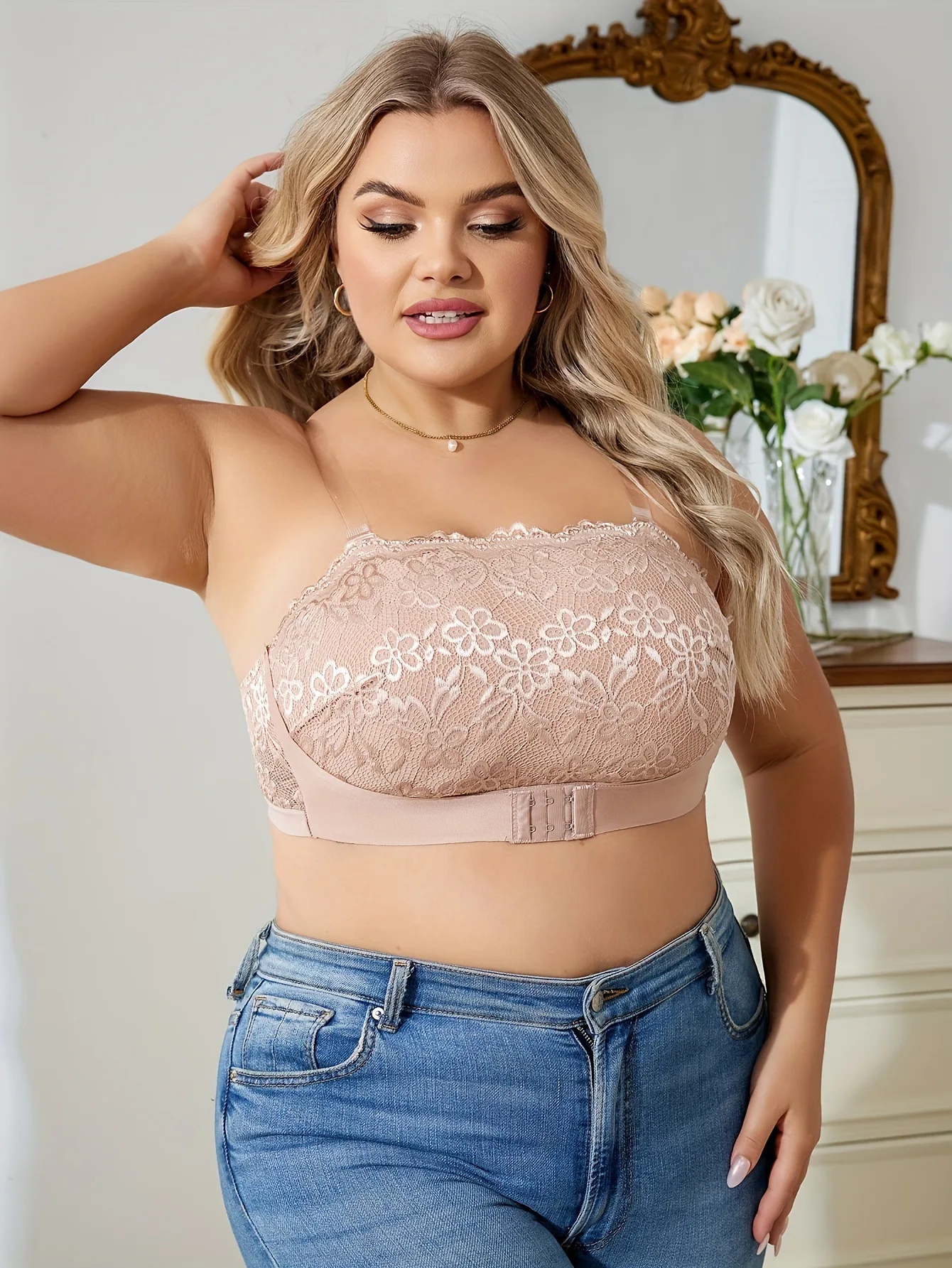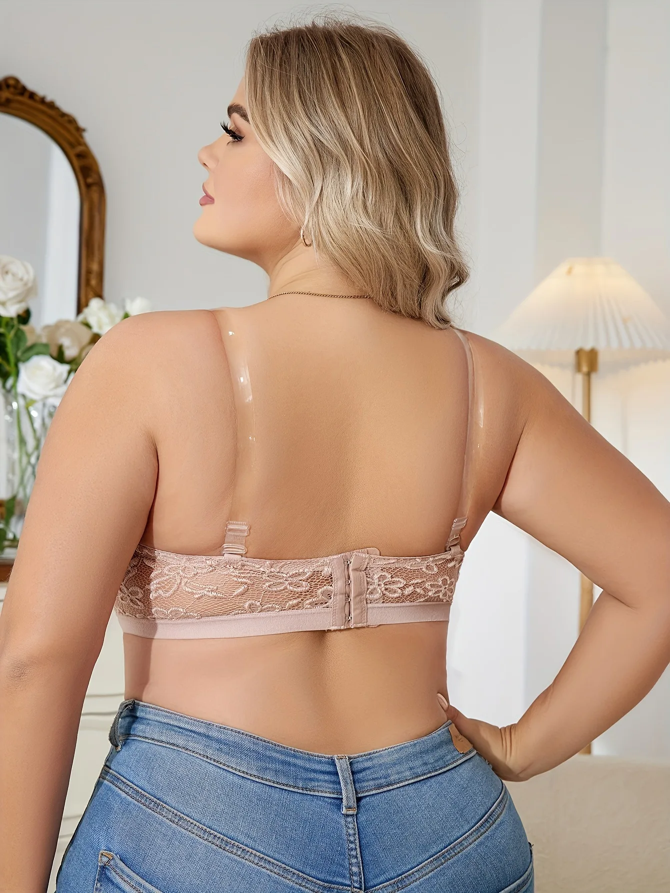 Sexy Lace Backless Breathable Bra Invisible Shoulder Straps Front Buckle Gathered Underwear Without Steel Ring Plus Size Bra