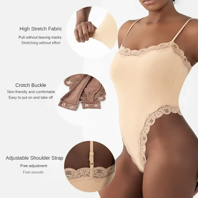 Women's Summer Lace-Trim Adjustable Bodysuit Slim-Fit Thong Body Shaper High-Stretch Breathable Double-Layer Shapewear Romper