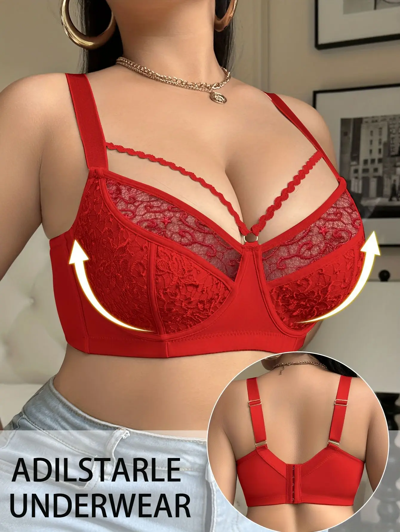 Ultra-Thin Padded Sheer Mesh Plus Size Bra Unique Front Lace & Thin Strap Design Lingerie Lightweight Comfortable Underwear