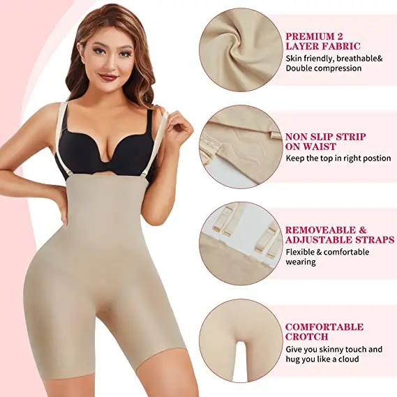 Hot Selling Women's Comfy Shapewear Adjustable Thin Straps Fajas Shorts Smooth Tummy Control Butt Lift Plus Size Body Shaper