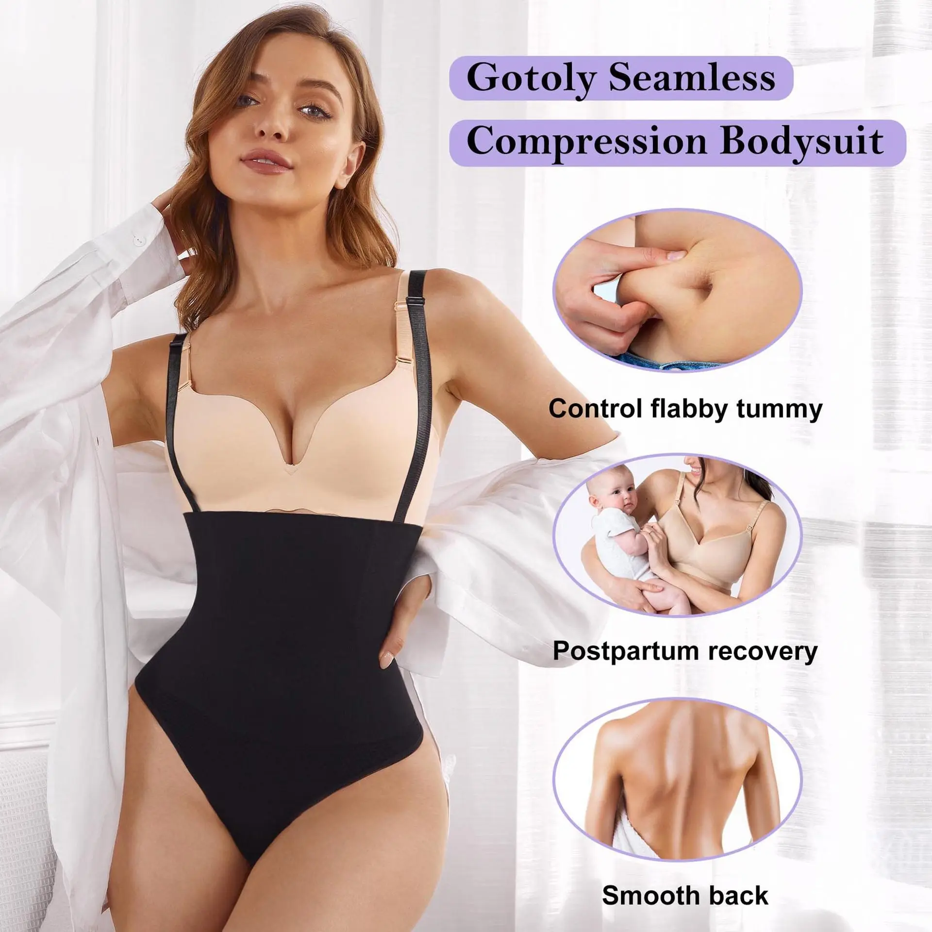 Women's Tummy Control Shapewear Bodysuit Waist Slimming Thong Peach Butt Lifting One-Piece Control Panties Wholesale