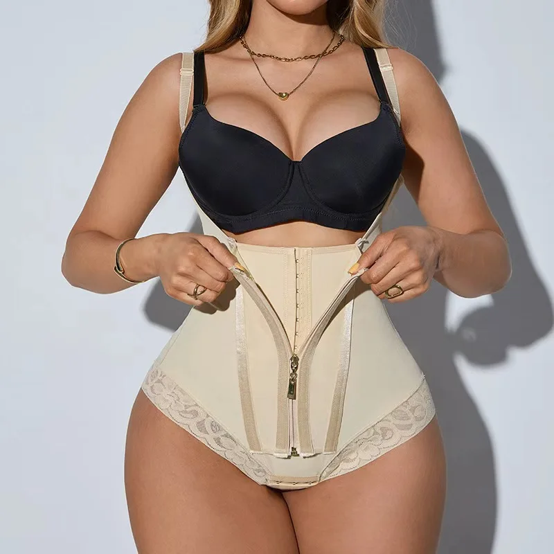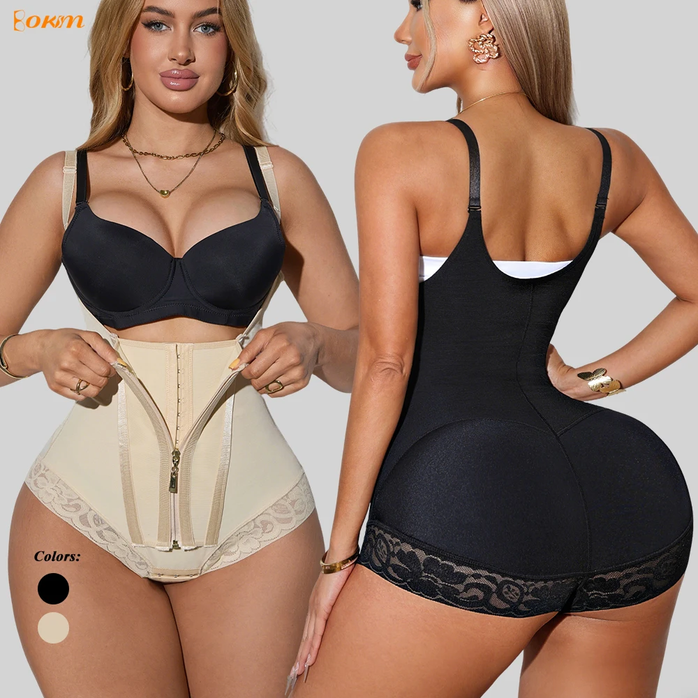 Open-Chest Colombian Corset Shaper Zipper High Compression Waist Trainer Tummy Control Shapewear Bodysuit