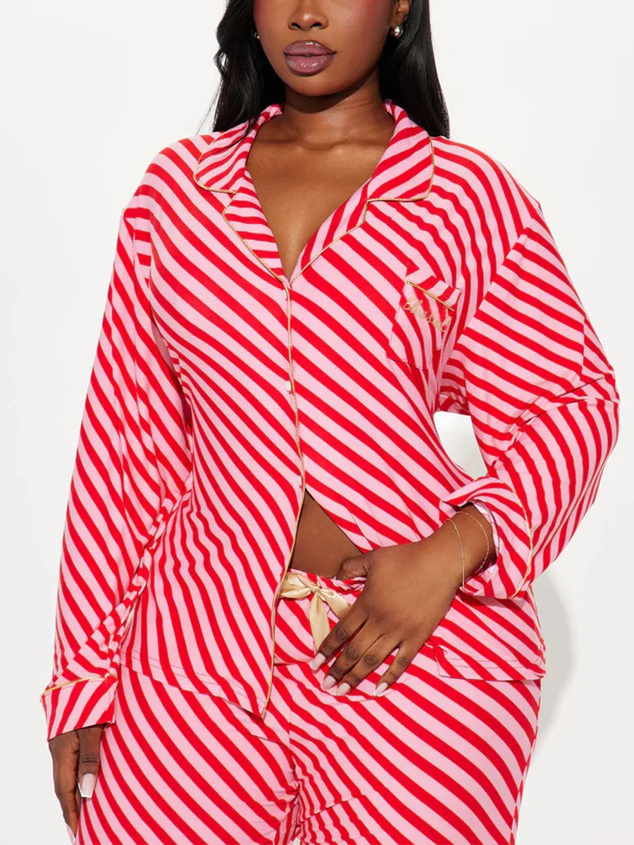 Women Winter Pajama Set Printed Lapel Long Sleeve Long Pants Christmas Sleepwear Autumn Breathable Loungewear