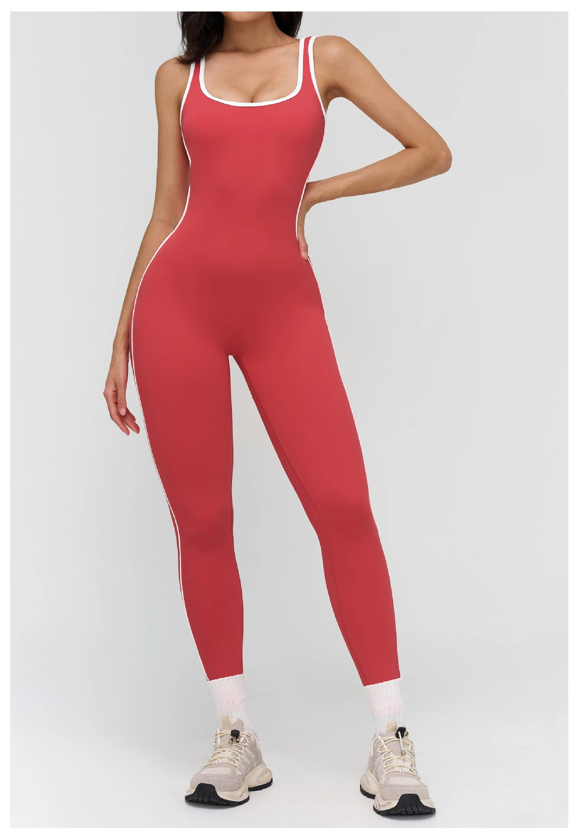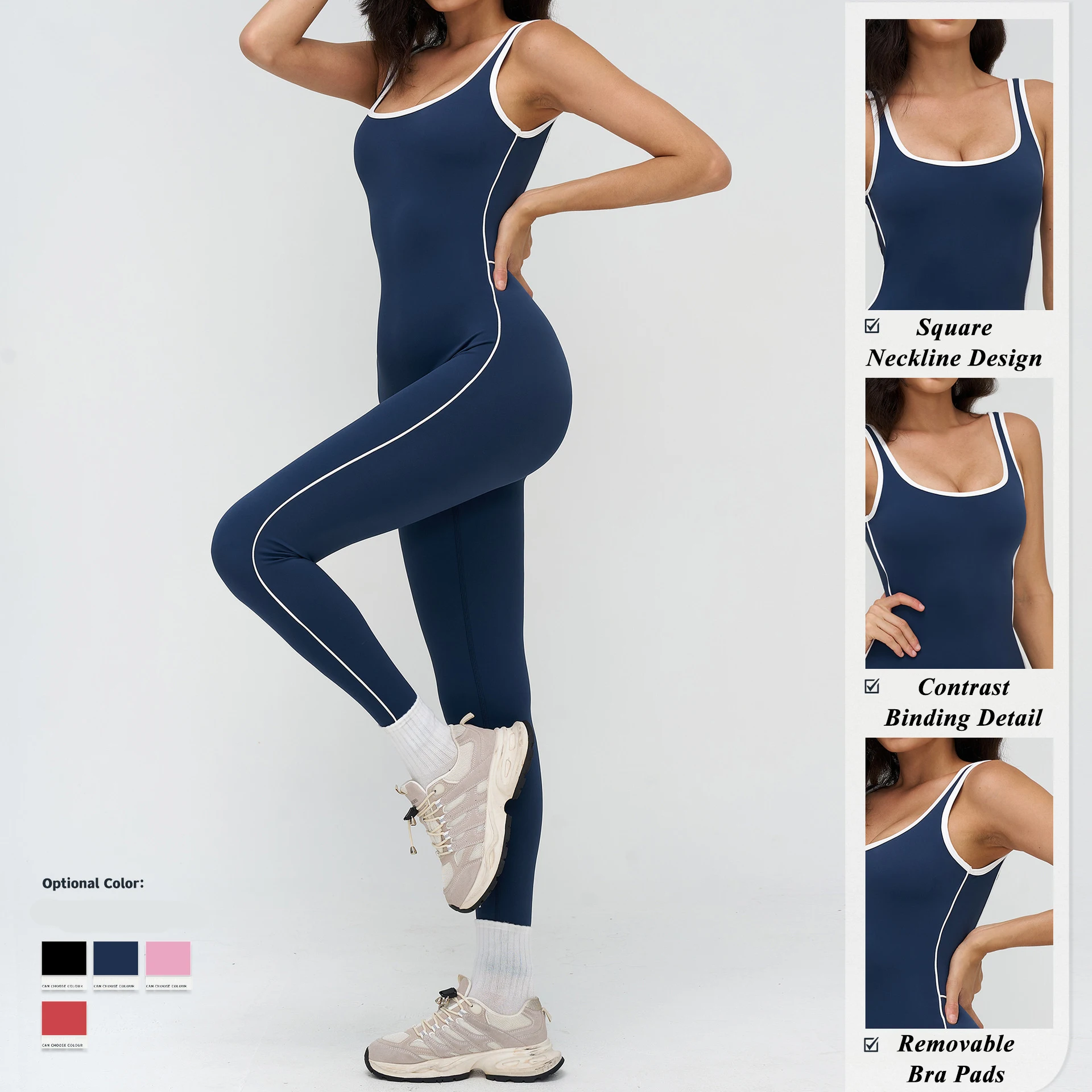 Women Color Block Yoga Jumpsuit Fitness Bodysuit with Square Neck for Gym & Running Full-Length Sleeveless Sportswear