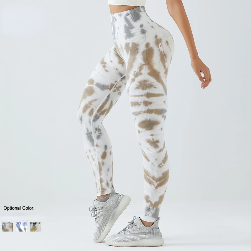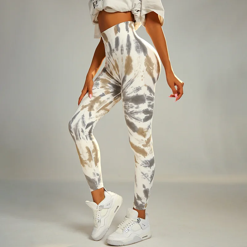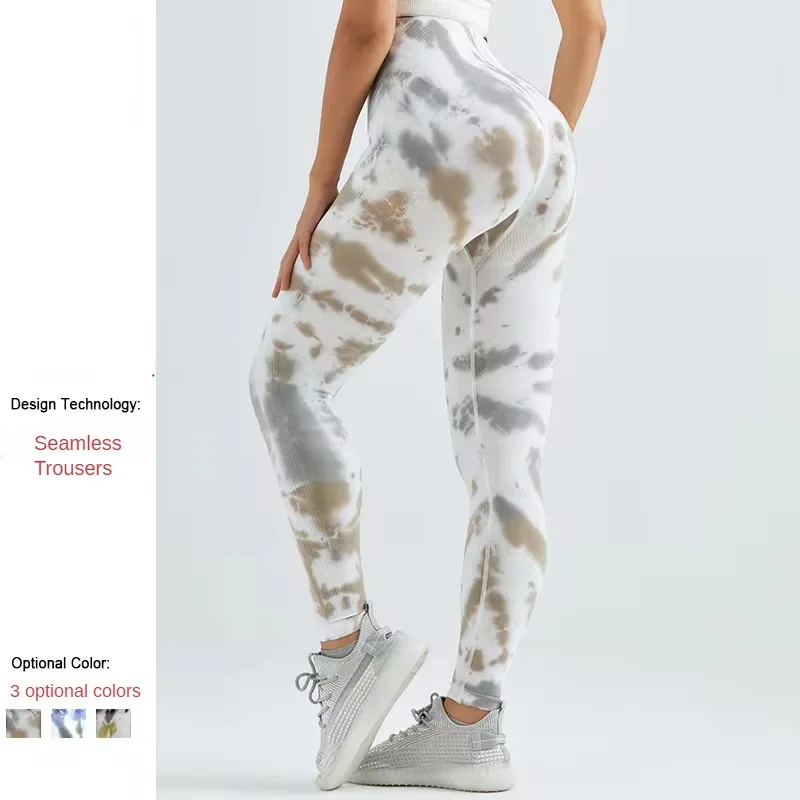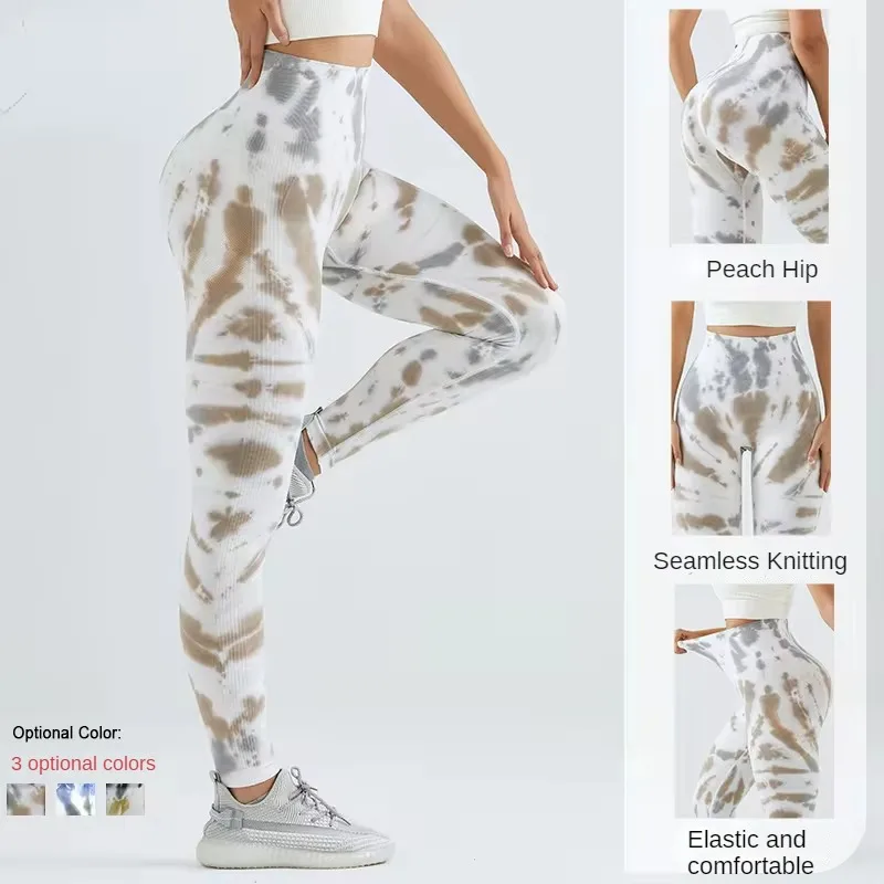 High Waisted Butt Lifting Elastic Sports Tights Slim Tummy Peach Butt Fitness Pants Seamless Tie-dye Yoga Pants for Women