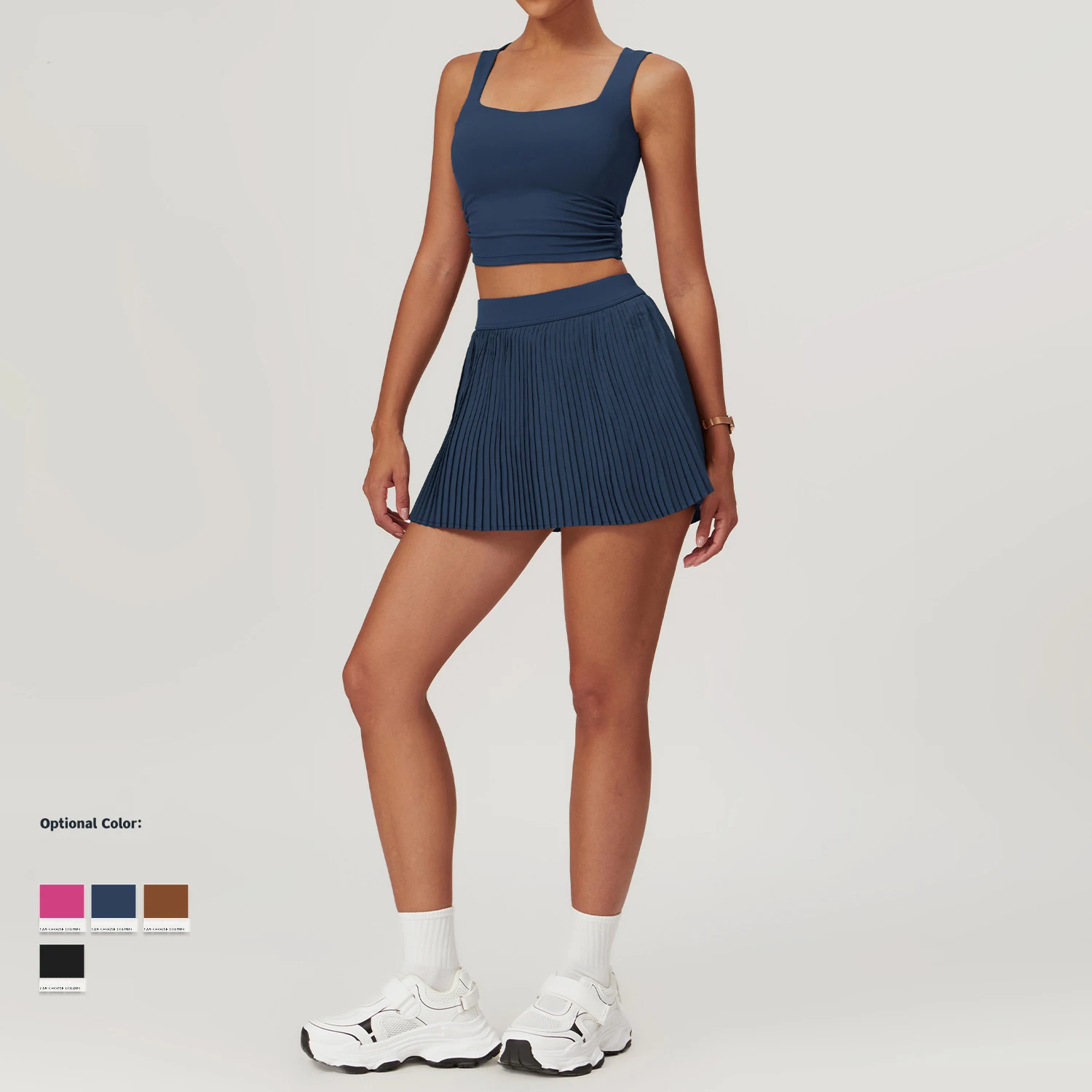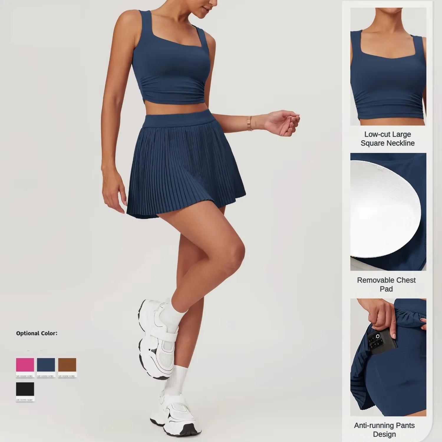 Summer Sport 2-in-1 Tennis and Golf Pleated Shorts With Pocket for Adults Women's High Waist Stretchy Workout Fitness Skirt