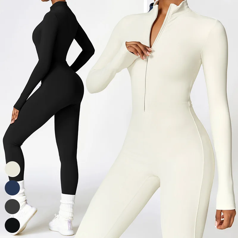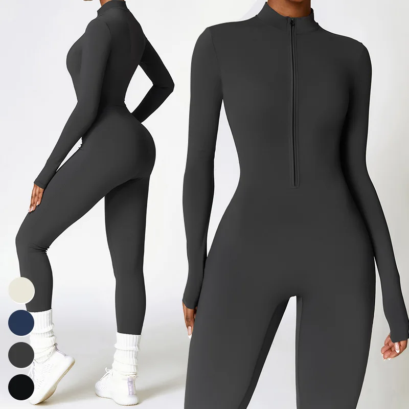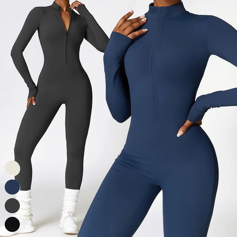BOJIN 2026 Custom Sports Bodysuit Women's Long Sleeve Yoga Jumpsuit One Piece Fleece Workout Wear Warm Fitness Jumpsuits