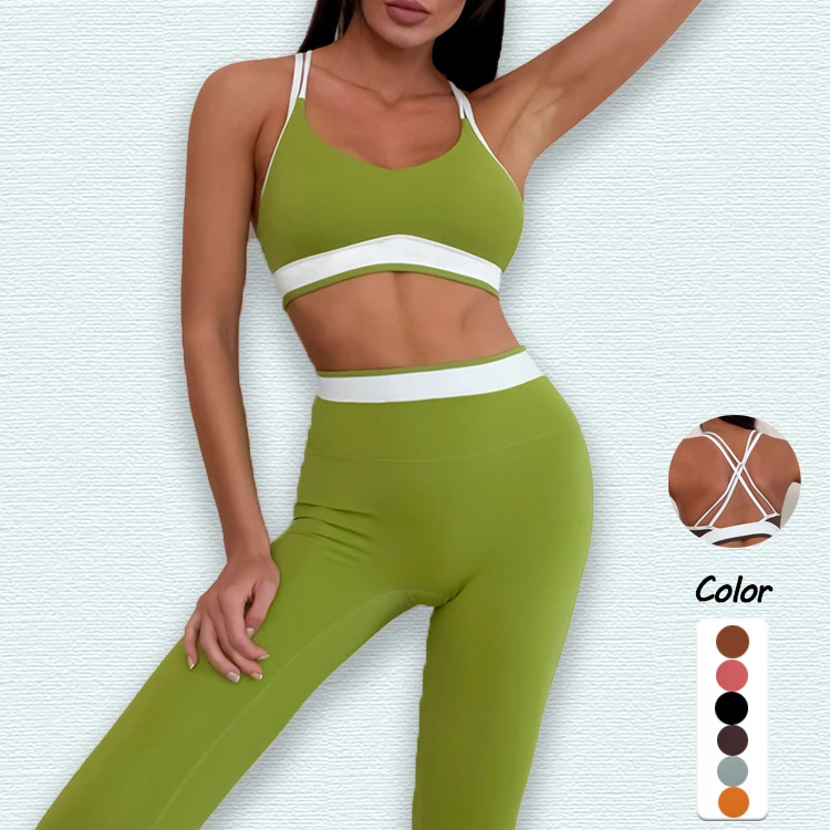 New Arrival Threaded Wear Spaghetti Straps Beautiful Back Bra Sport Pants 2 Pieces Drawstring Fitness Yoga Sports Set