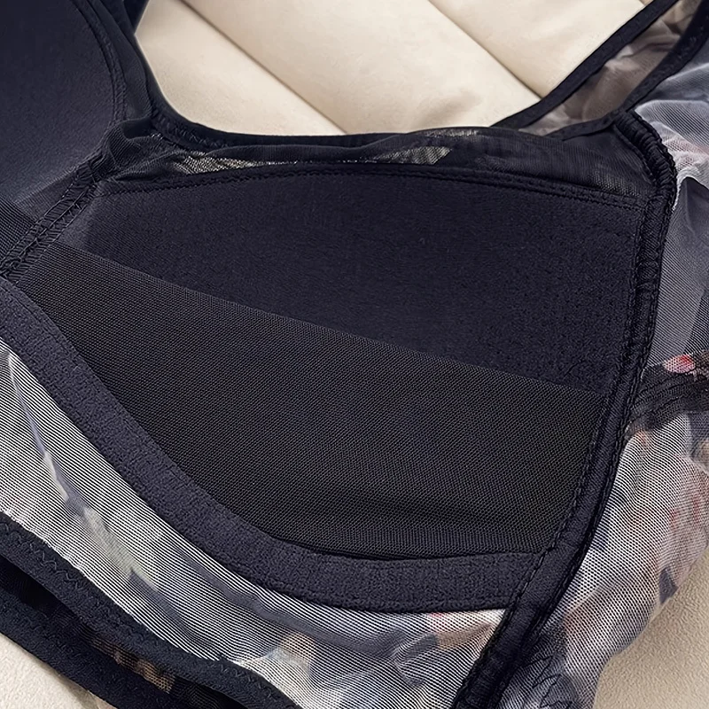 Women's Thin Lace Bra Floral Printed Push-Up Plus Size Wireless No-Buckle Sexy Lingerie Soft Breathable Lace Underwear