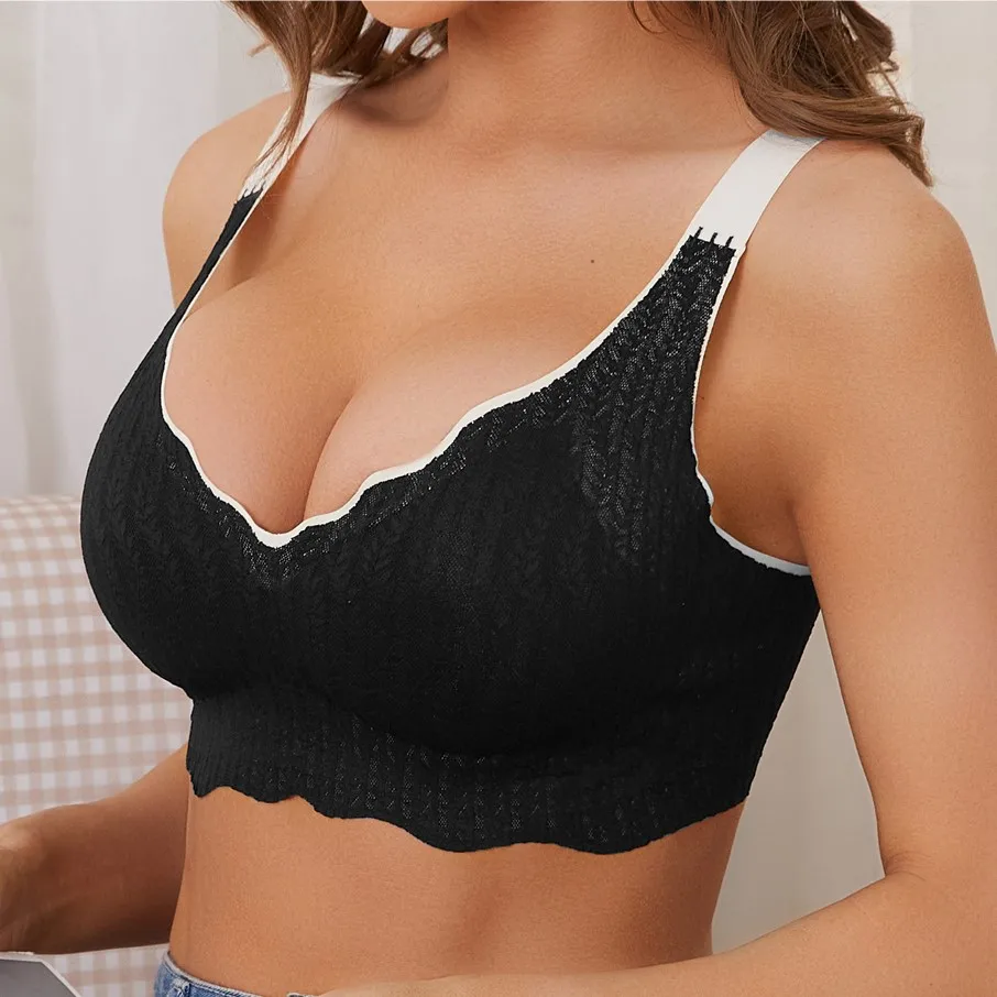 New Trend Wireless Bra for Women Custom Full Cup Ladies V Neck Support Push up Bralettes Seamless Padded Scalloped Tank Bras