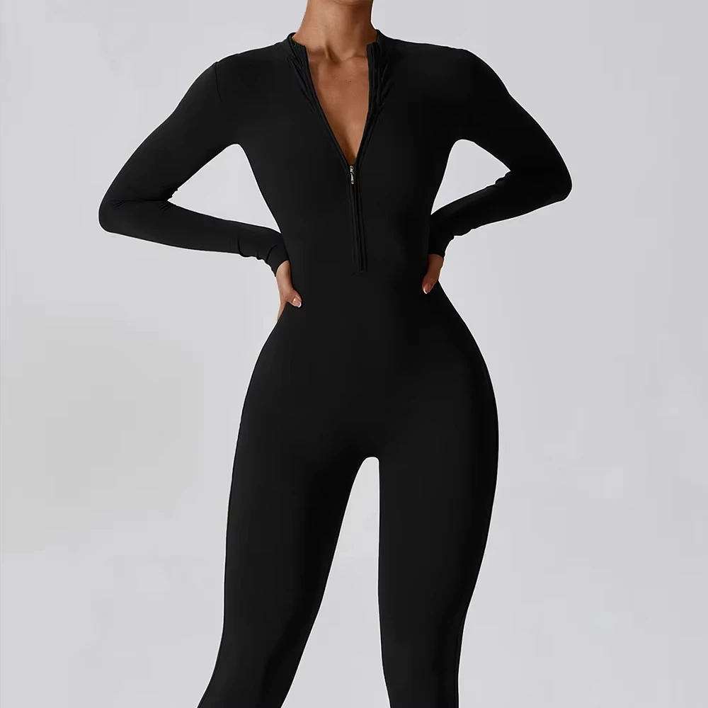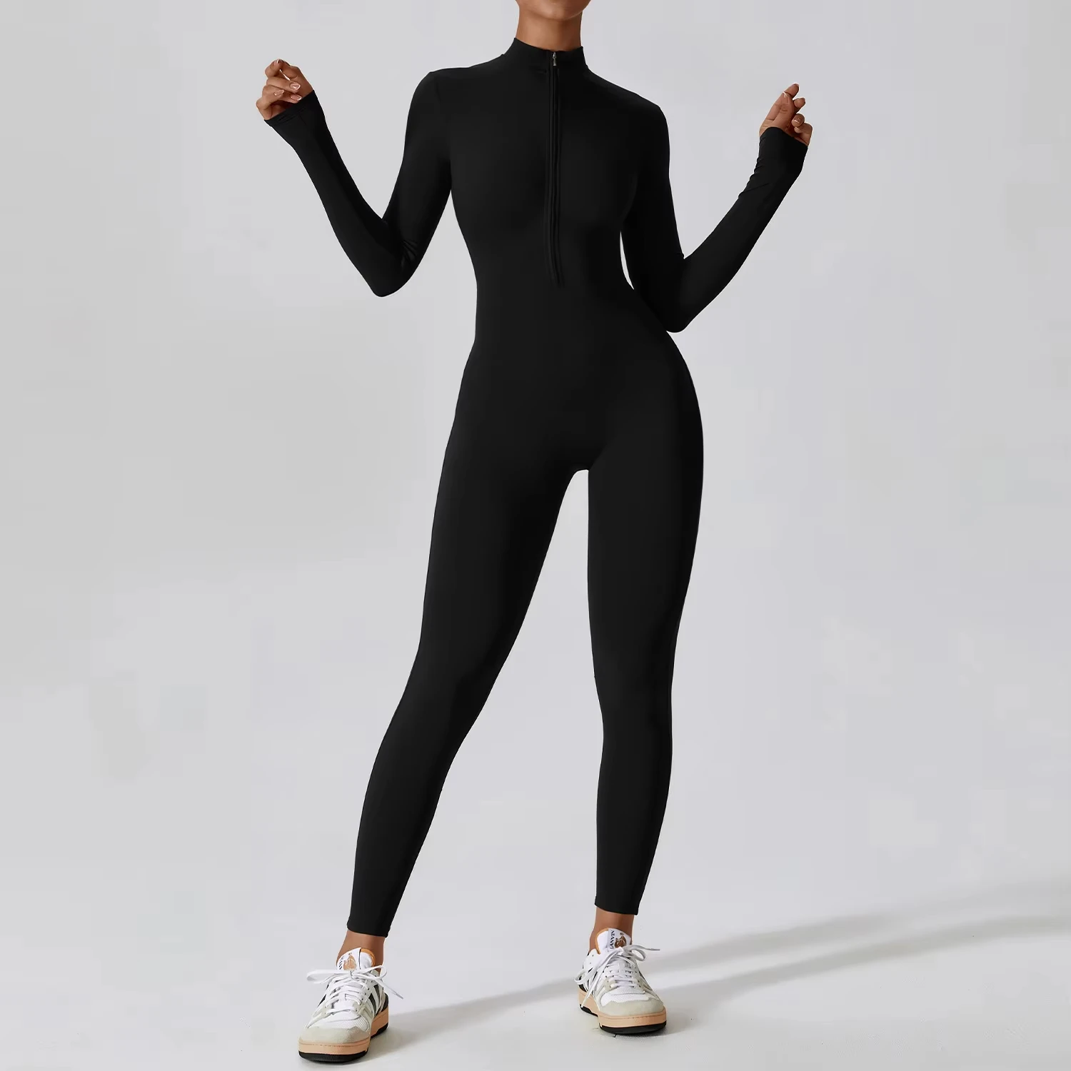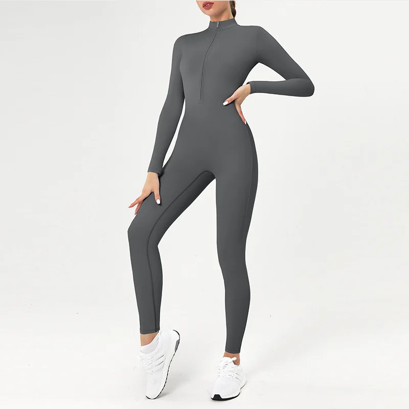 Women Yoga Jumpsuit Fitness Sports Suit Zipper Elastic One-Piece Bodysuits Gym Long Sleeve Gym Running Push up Workout Sportwear
