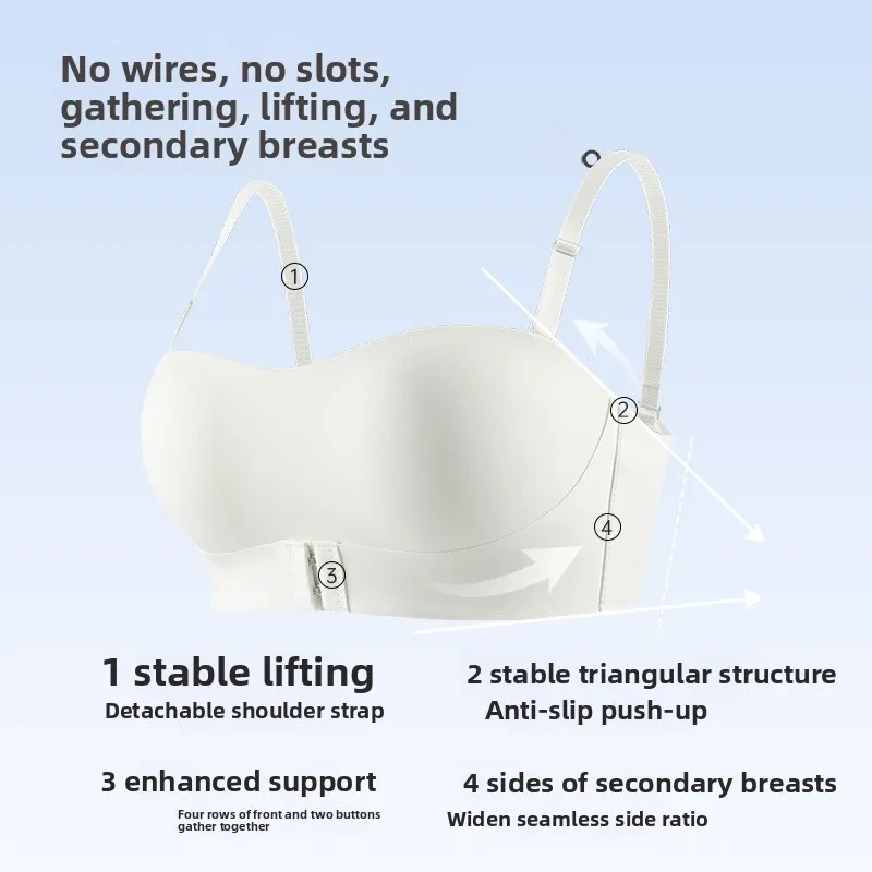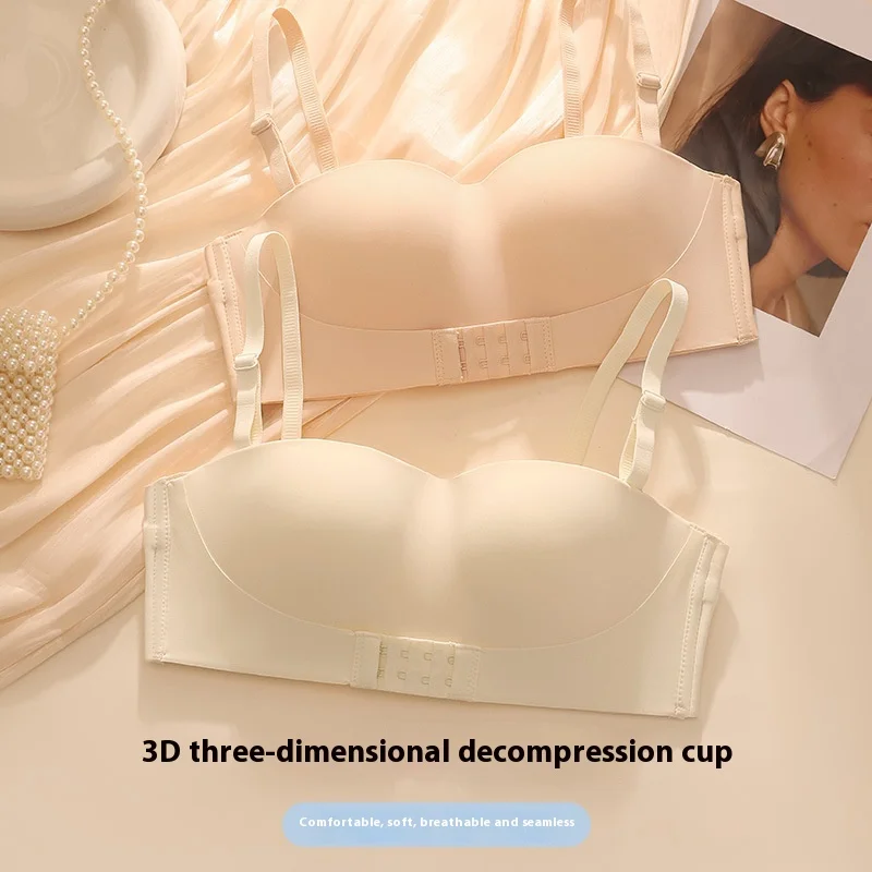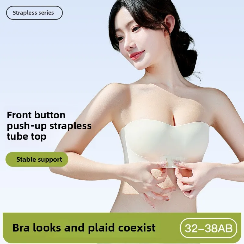 Wire-Free Anti-Slip Technology Solid Beauty Back Integrated Front Closure Push-Up Invisible Tube for Small Cup Strapless Bra