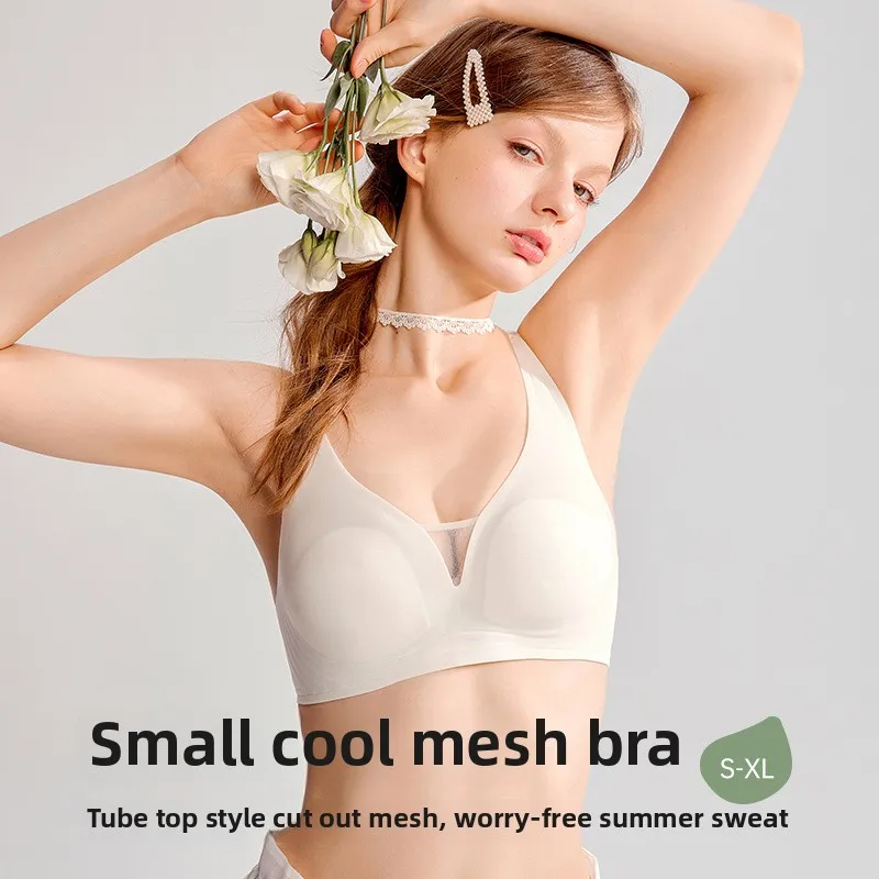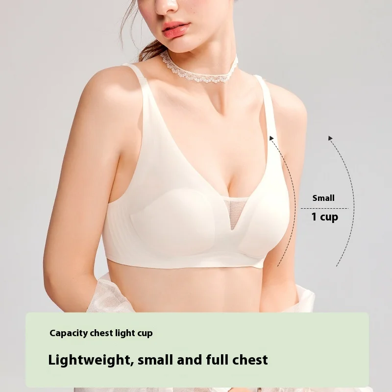 Soft Support Large Bust Minimizing Summer Rabbit Cup Gathered Wire-Free Solid Wholesale Women's Ultra-Thin Seamless Jelly Bra