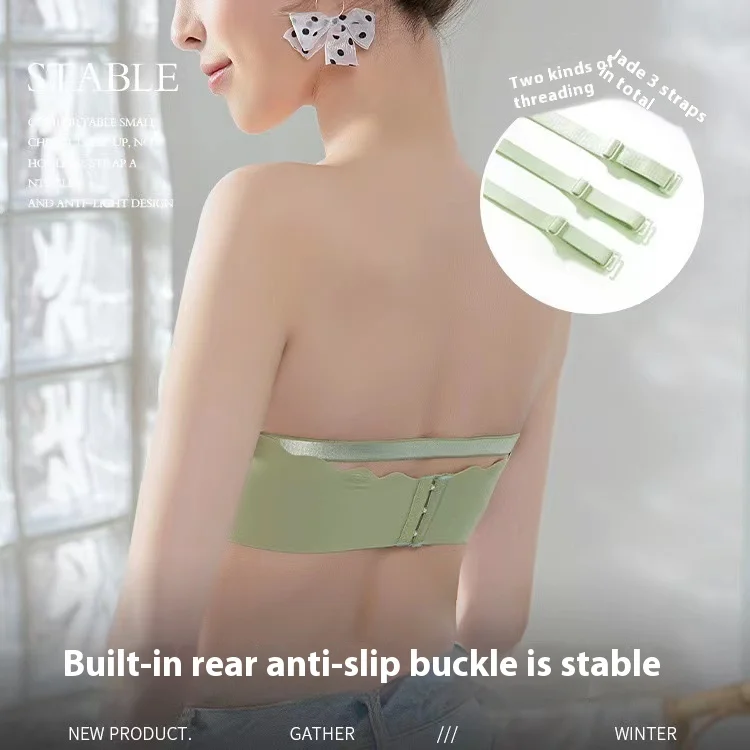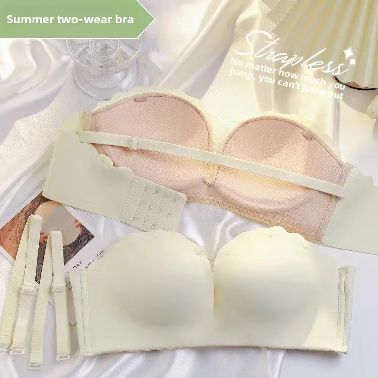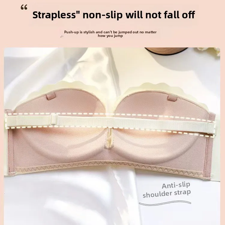 Summer Breathable Nylon Solid Color Beautiful Back Tube Top Anti-Slip Push-Up for Small Chest Women's Seamless Strapless Bra