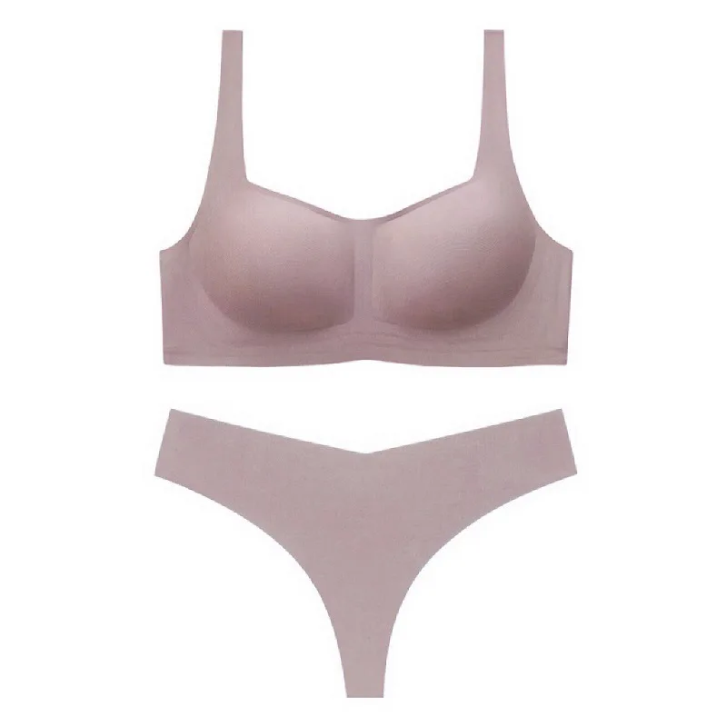 Hot Sales Logo Comfortable High Elastic Ice Silk Seamless Push-up Sports Bra for Women Breathable Wire-Free Soft Jelly Bra Set