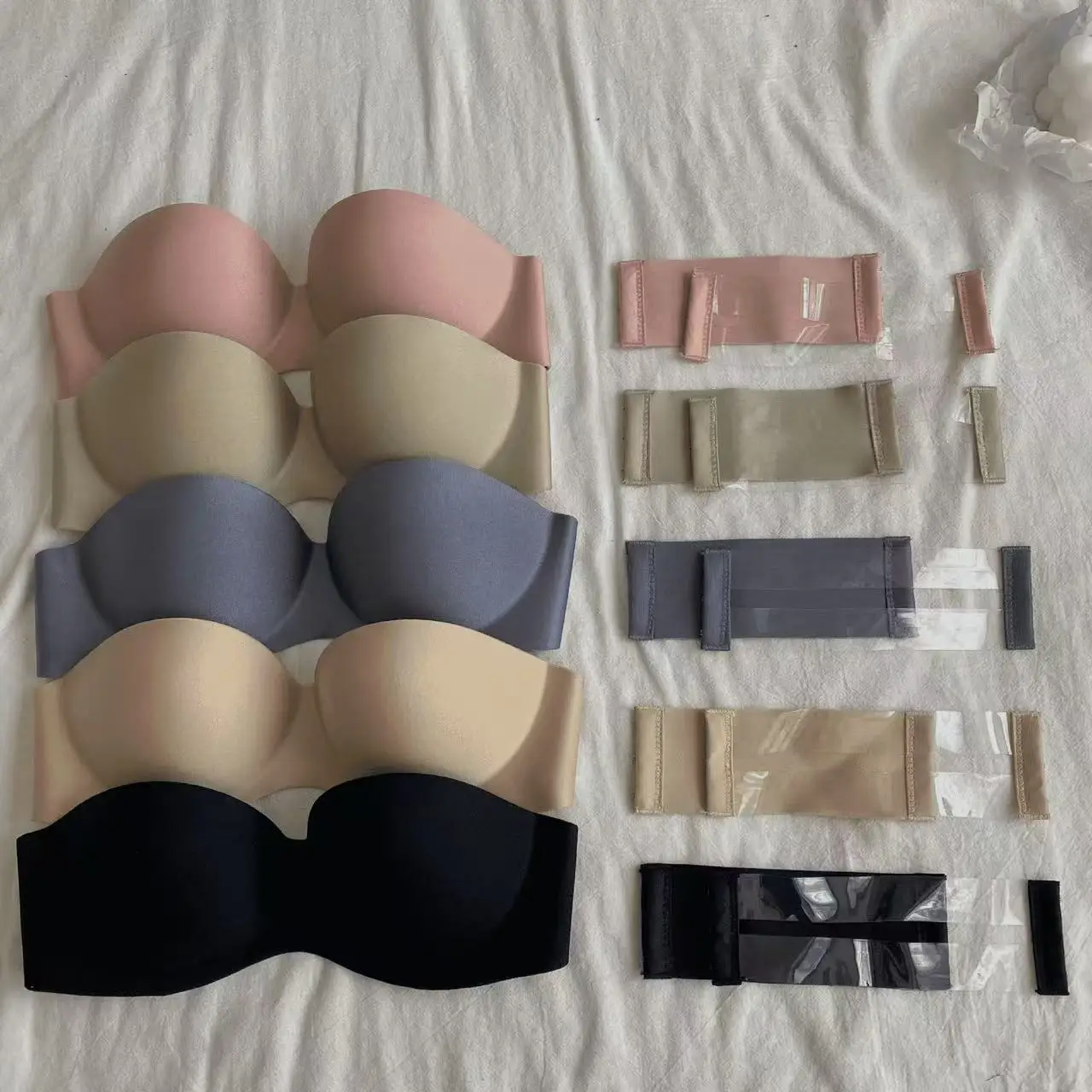 Women's Summer Sexy Seamless Anti-Slip Bra Strapless Off-Shoulder Beautiful Back Colorless Nude Feeling Wire-Free Solid Cup