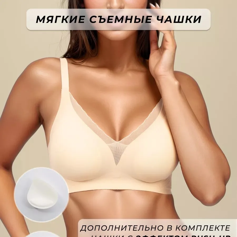 New Trend Wireless Bra for Women Custom Full Cup Ladies V Neck Support Push up Bralettes Seamless Padded Scalloped Tank Bras