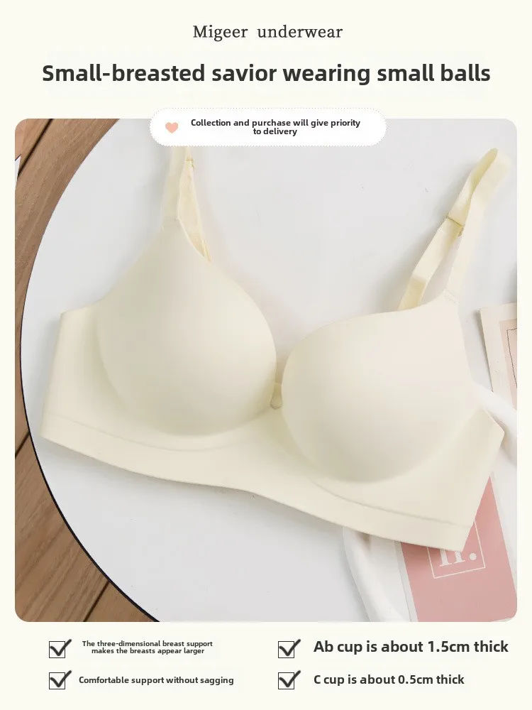 Authentic Summer Thin Style Women's Intimates Small Breasts Push-Up Enlargement Adjustable Breast-Retracting Solid Seamless Bra