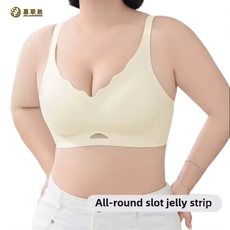 Plus Size 3/4 Cup Breathable Bra Wire-Free Women's One-piece Anti-Sagging Adjustable Seamless Push-up Jelly Bra for Women