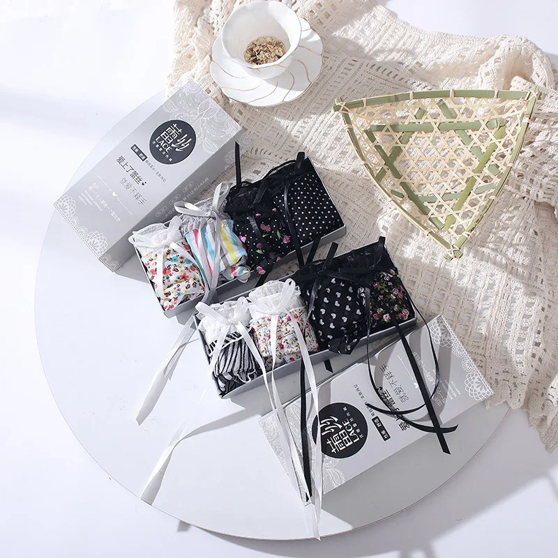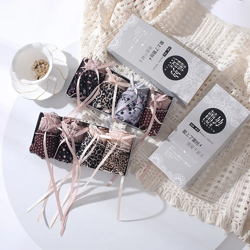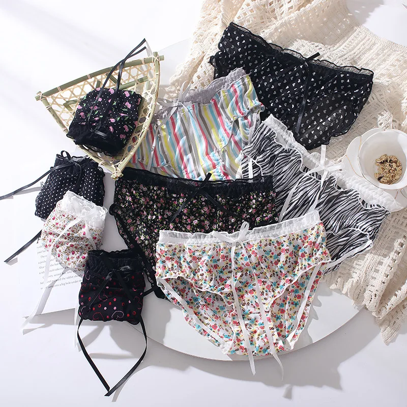 HD299 Mid-waist Printed Sexy Lace Women's Panties Sweet Bow Wooden Ear Underwear Women's Cotton Crotch
