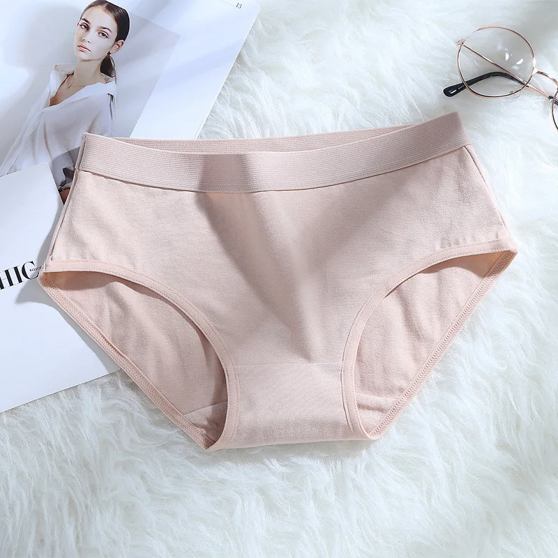 HD115 Women's Middle Waist Seamless Tummy Control Solid Color Cotton Briefs
