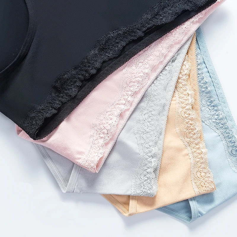 Hot Sell Women's Cotton Underwear Lace Side Seamless Classic Mid-Rise Briefs Breathable Cotton Solid Color Briefs
