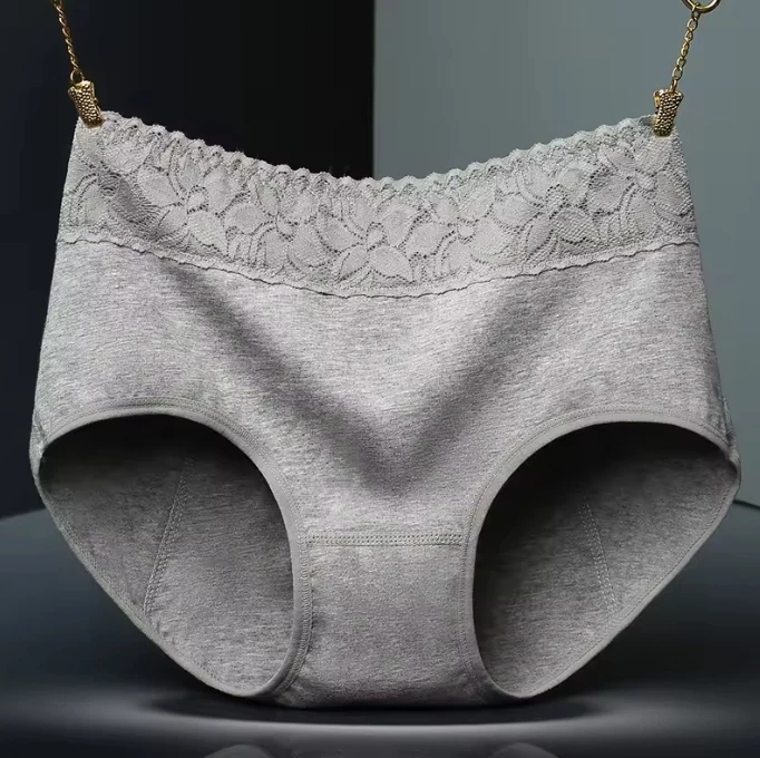 Hot Sell Cotton 3 Layers Leak Proof Pure Color Lace Design Mid Waist Plus Size Ladies Panty Women Menstrual Underwear Pants