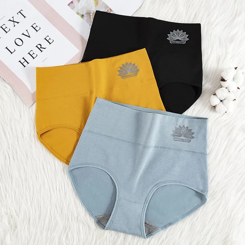 Solid Pattern High-Rise Sexy Plus Size Cotton Printed Design Breathable Underwear Leak Proof Panties for Women