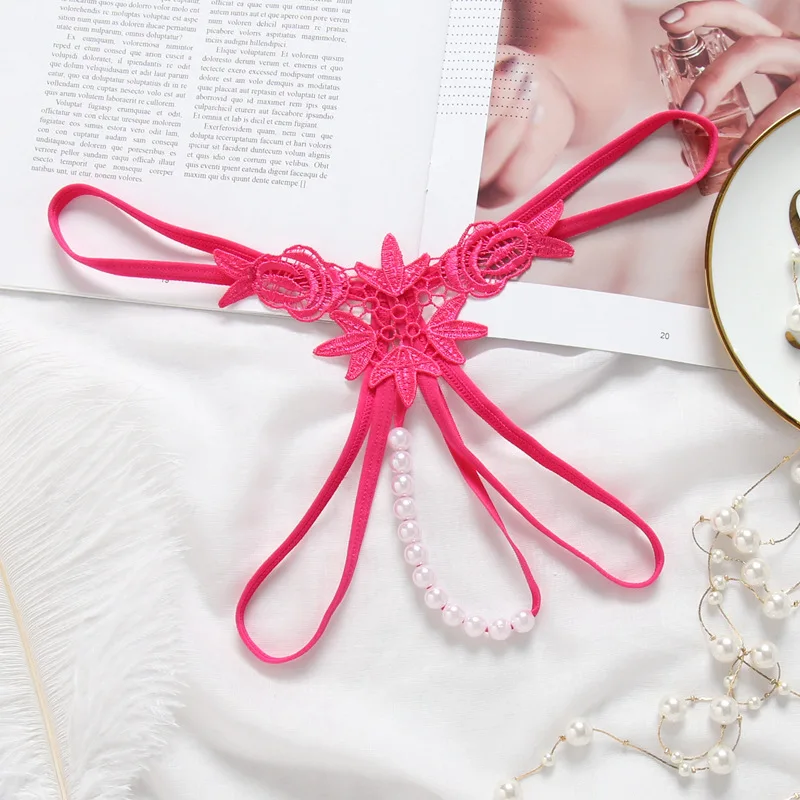 HD190 Embroidered Three-dimensional Sexy Underwear Pearl Women's Flower T-back Low Waist Summer Hollow Sexy See-through