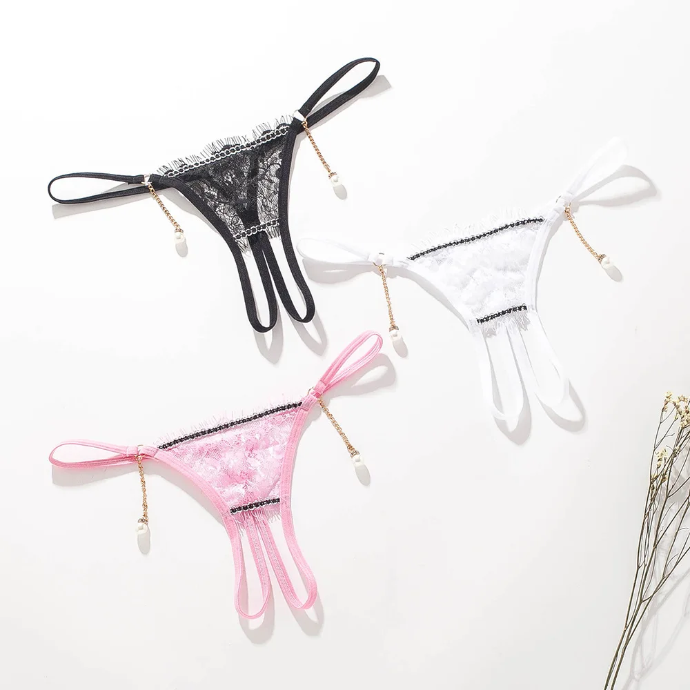 HD195 Sexy Ms Eyelash Lace Sexy T-shaped Pants Open Fork Elastic Ladies Panties See-through Lace-up Underwear