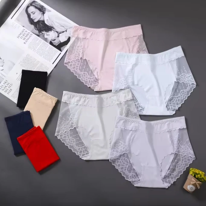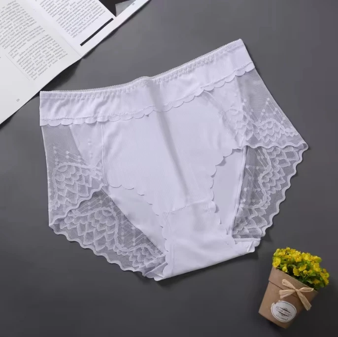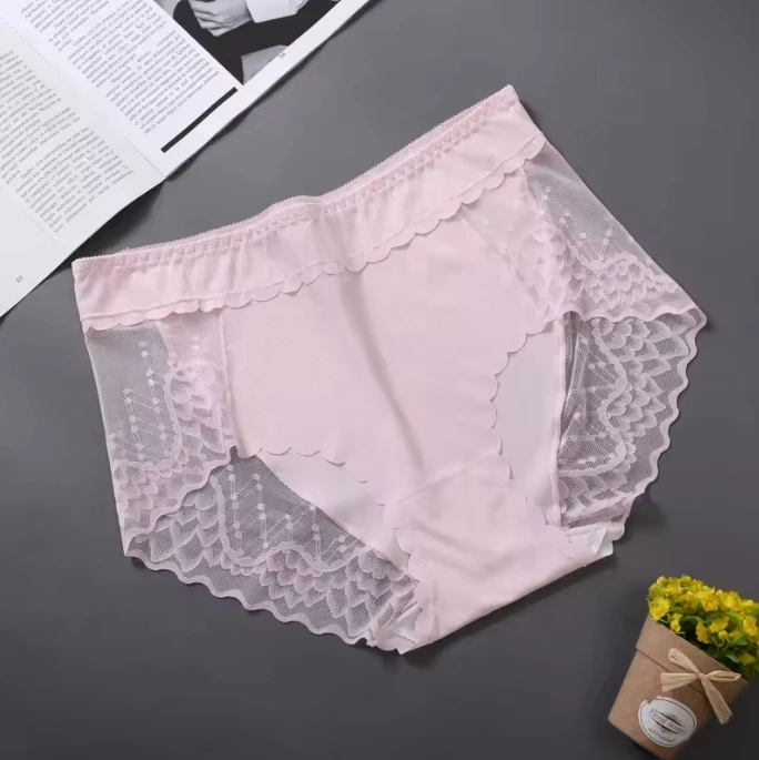 Woman Seamless Lace Mesh Design Mid Rise Panties Cotton Traceless Underwear Women Ice Silk Panties