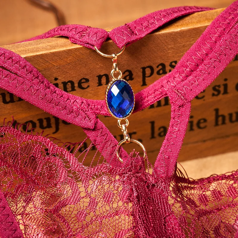 HD187 T-back Lady Sexy Eyelash Lace Hot Open-crotch Style Sexy Lingerie Low Waist Diamond Decorations Transparent Underwear