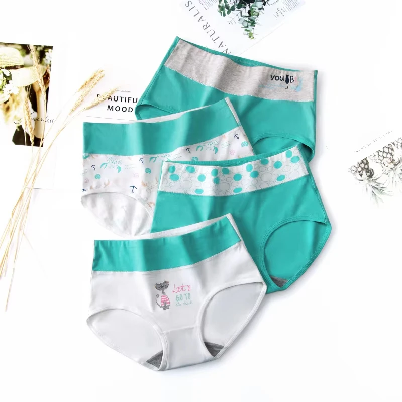 KK084 Women's Large Size Seamless High Waist Underwear Cotton Women's Cute Printed Girl Design Underwear