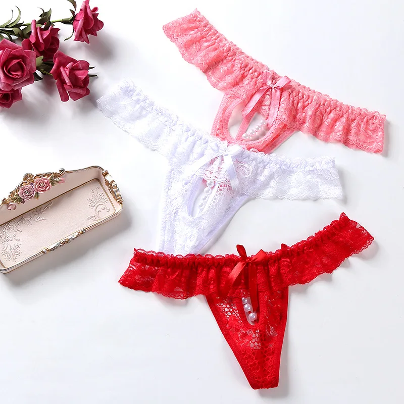 HD251 Ms Pearl Underwear Vibration Sexy Lace Europe and the United States Interest Open Files Thong Low-rise t Pants Female